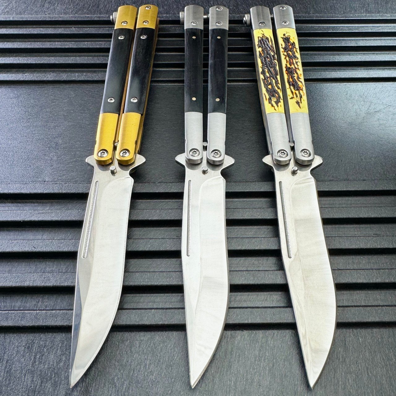 Bamboo Handle Butterfly Knife Balisong – Stainless Steel Flipper