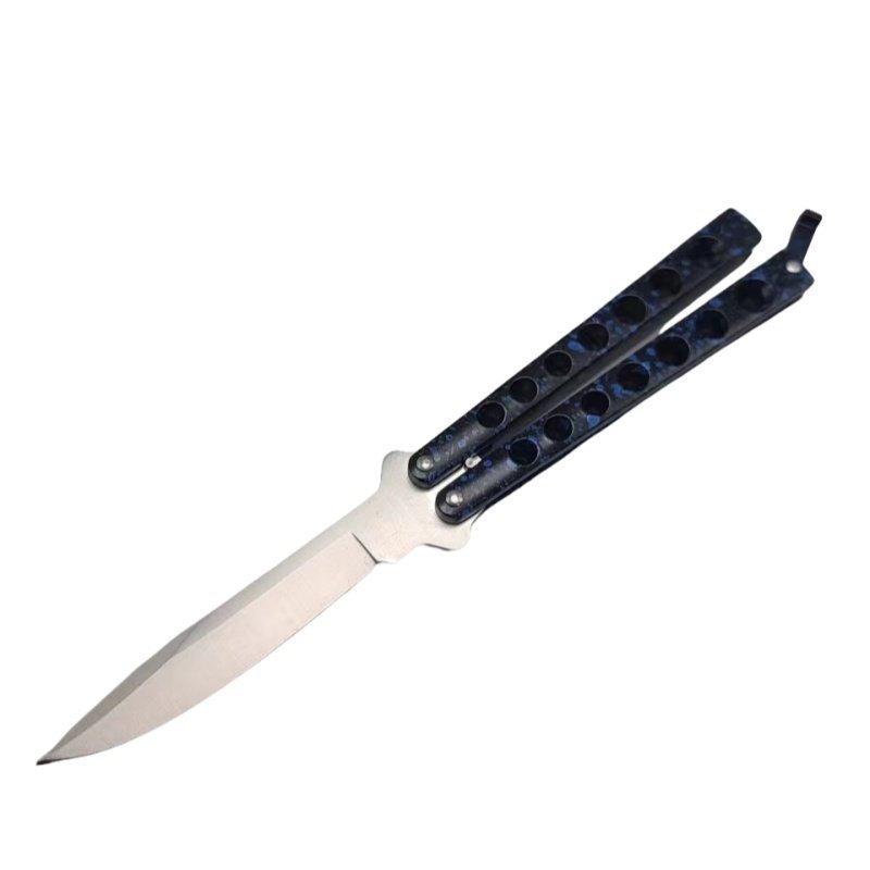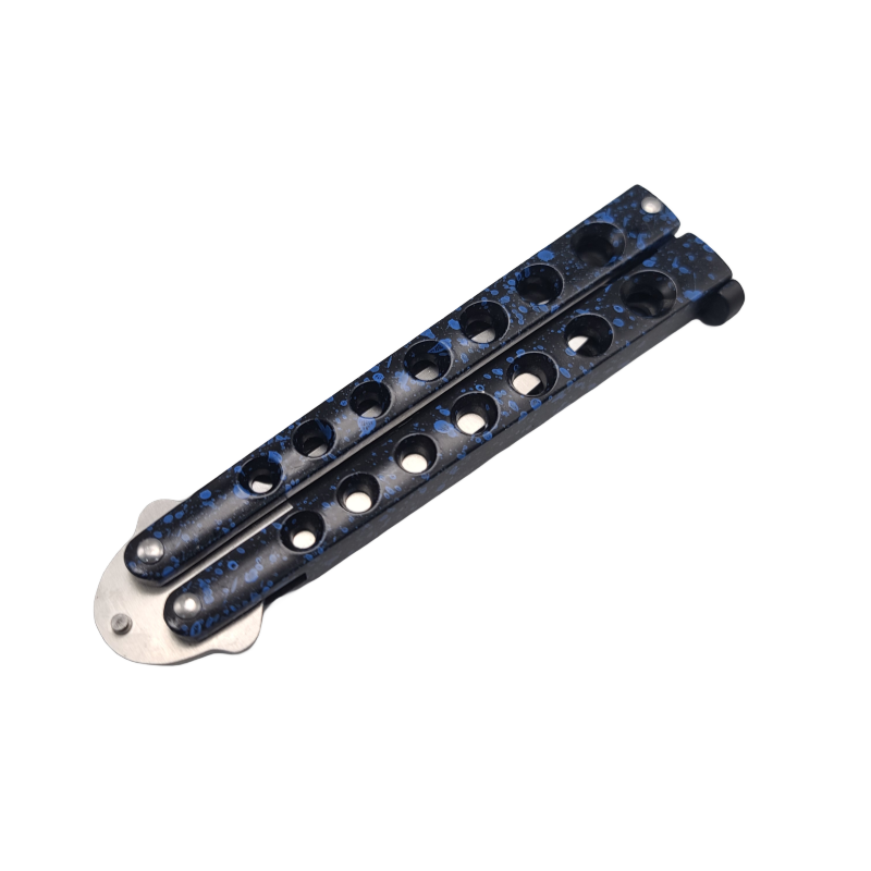 Helix Handle Butterfly Knife Balisong – Blue Stainless Steel