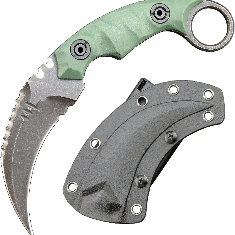 Karambit Knife D2 Steel + Nylon Fiberglass Handle Outdoor Claw Knife With Kydex Sheath Edc-Greeng